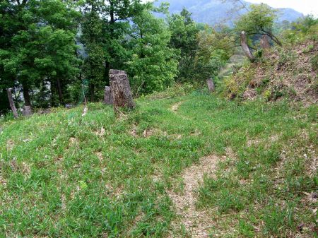 大林八幡宮の境内から登れば、まずH郭に着く、そこから右にとって本丸を目指す。