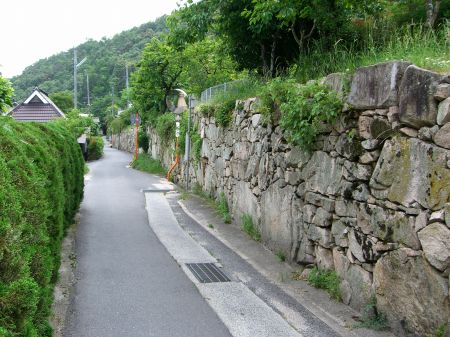 街道と城跡の間には根の谷川が天然の堀となっている。