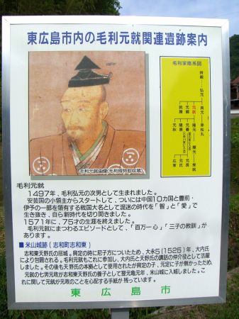 ![]() | 城跡南西麓にある案内板。 毛利元就七男元政(四男以降は側室の子)が、 志和東天野氏の養子として入った城。 |