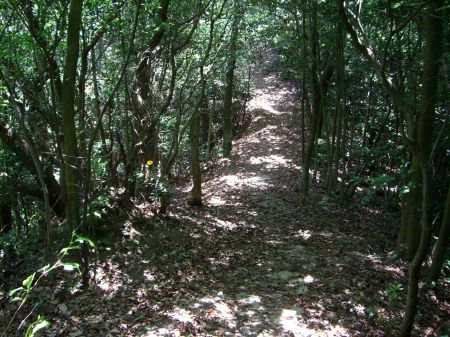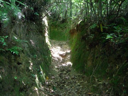 登り始めてすぐ、土塁の道。