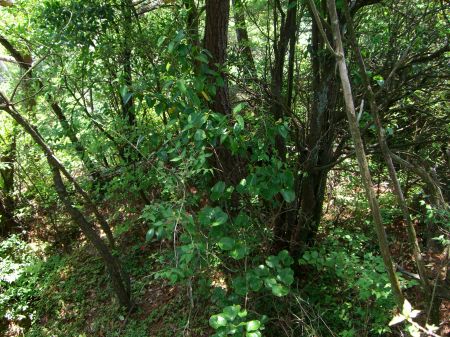 山道脇の小丘陵。
