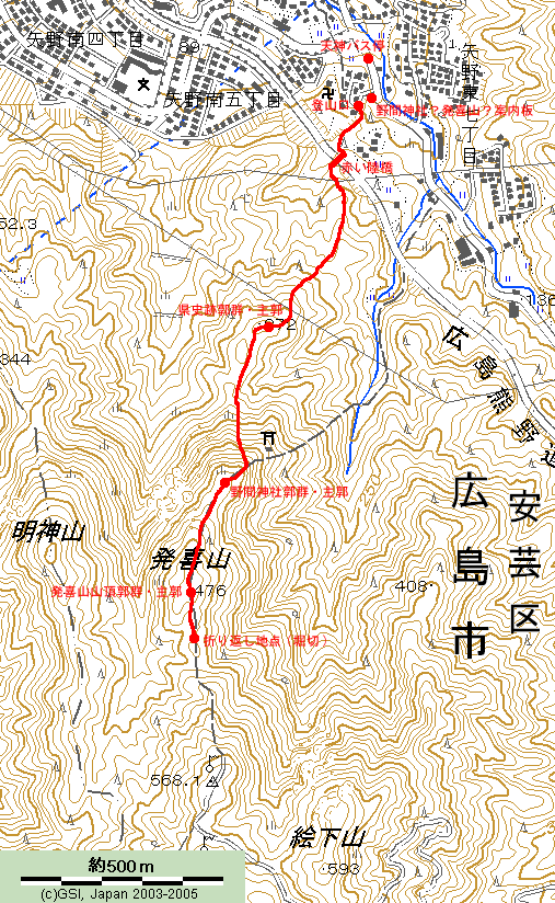 矢野東登山口 :100m