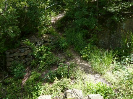 そのまま登ればすぐ山頂郭群の南端です。(その回り道がどこに出るのかは不明です。)