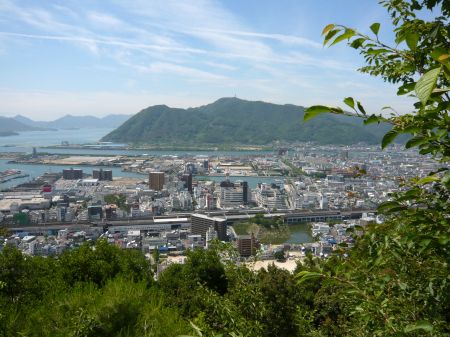 山頂からの三原城跡方面。