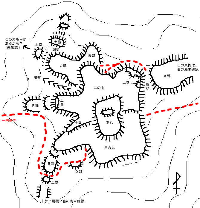 円通寺からの比高、55m。