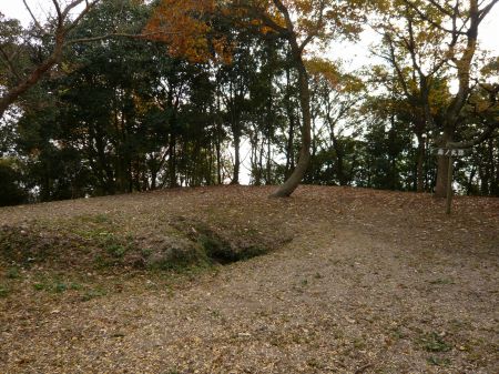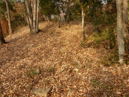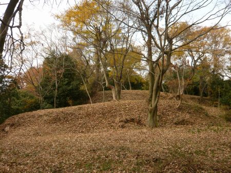 ![]() | 出丸の西にある土塁。 右上が南丸。 |