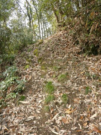 ![]() | E郭から帯郭に登る道。 石段跡が残っている。 |