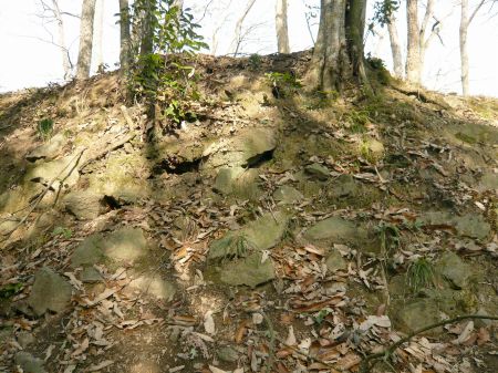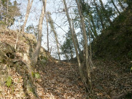 ![]() | 帯郭から二の丸に上がる登城口でしょうか? 帯郭の南端近くにある。 |