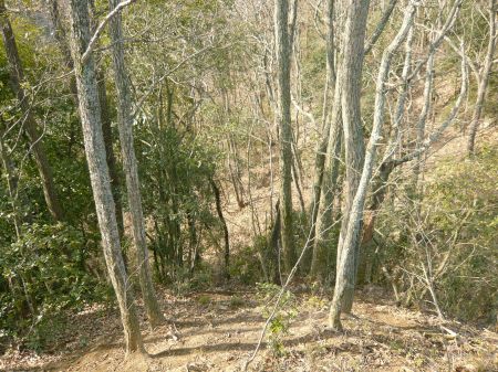![]() | 堀切の更に先の尾根から北西の展望。 案内板にある西端の堀切は、 尾根をどこまで行っても見つからなかった。 |