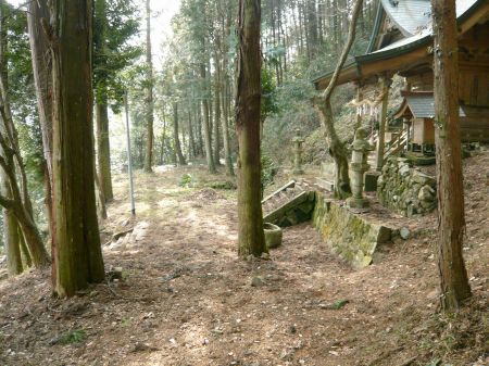 ![]() | 下る途中に天神社。 削平地になっているが、館跡か何かでしょうか? |