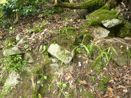 3郭に下りる途中、2郭下の石垣跡。