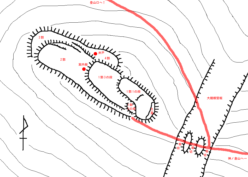 鍋谷城跡へは、