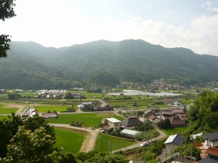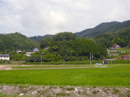 ![]() | 南東方面の展望。 中央の丘陵地が北田城跡。 |