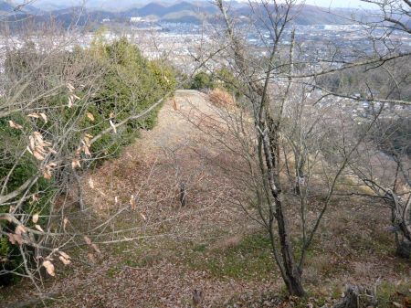 搦め手の谷筋を見下ろす。