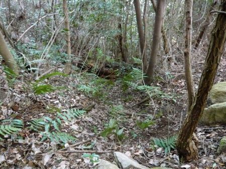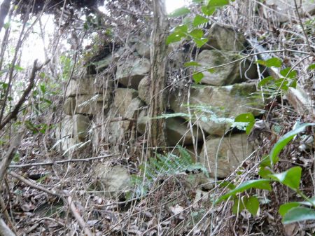 ![]() | 主郭南東下に回り込むと石垣が残っています。 |