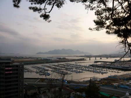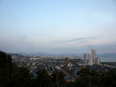 ![]() | 市内方面の展望。 当時はこの辺りは全て海でした。 中央右寄りに仁保島城跡(黄金山)。 |
