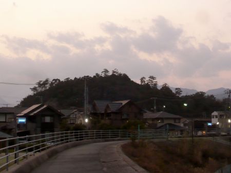 ![]() | 海老山城跡全景。(東側より) ビューポイントを探すうち、 日が暮れかかりました。 |