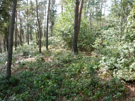 ![]() | 更に南西100mに郭跡。 ここも藪だらけです。 |