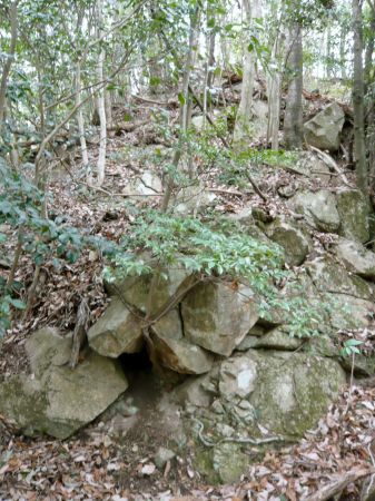 ![]() | 戻って1本目堀切辺りにある石垣跡。 |