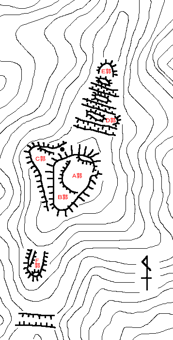 ![]() | F郭から南に下った鞍部にある堀切。 |