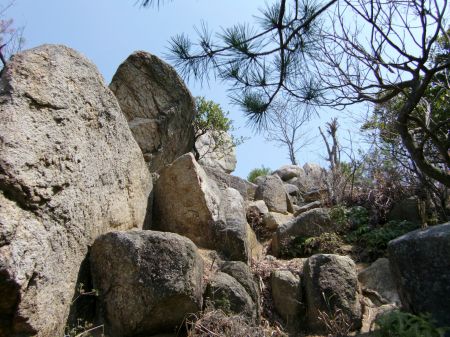 ![]() | 主郭南端。 この岩場は虎口の役割でしょうか? |