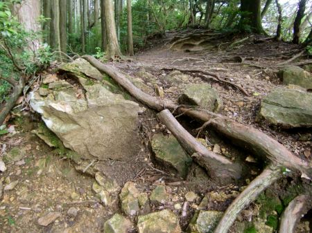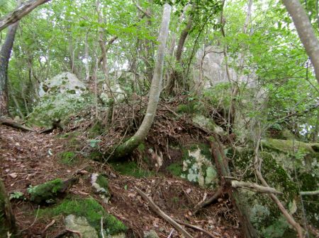標柱などでの説明もあり、登山道に加え、城跡としても整備されています。