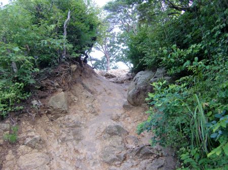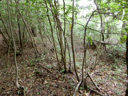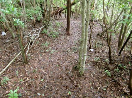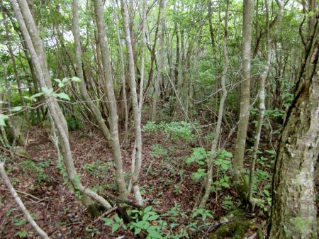 完全に藪化して、藪の下は長雨の為湿地状態です。