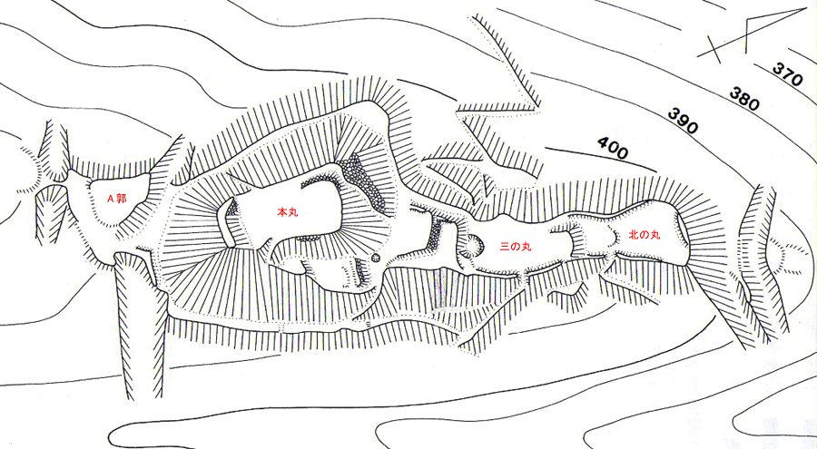 今回は、国道から尾根(城域)の反対(東)側に回り込み、搦め手道から登りましたが、