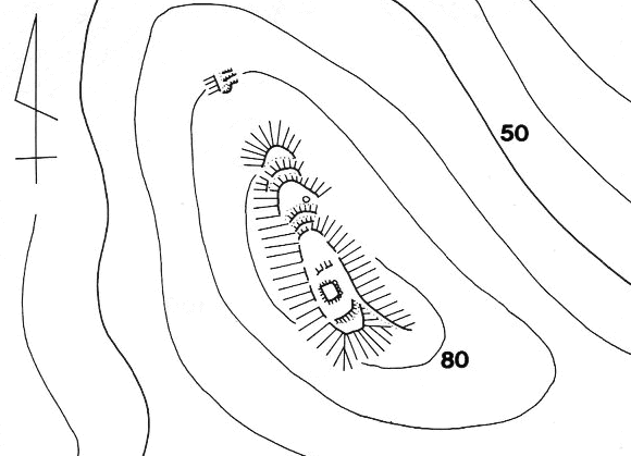 又は、竹原小学校から南へ200mの丘陵先端になります。