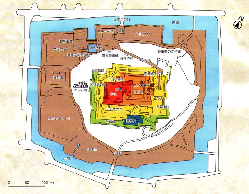 | 見返り坂を登って、三の丸、二の丸、本丸へ... |