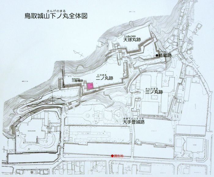 鳥取県庁のすぐ北側に位置し、山下ノ丸の三ノ丸跡には鳥取西高が建ってます。