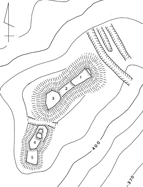 西から東に向かってほぼ一張りに張り出した山頂をうまく利用して、三つの郭を設けている。