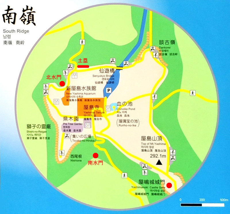 土塁跡(北斜面)、北水門跡、南水門跡などもあるみたいですが、確認出来なかった...