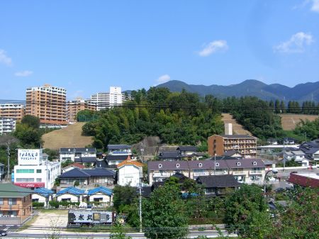 左の平坦部は上部が削られ、亀崎中学となっている。