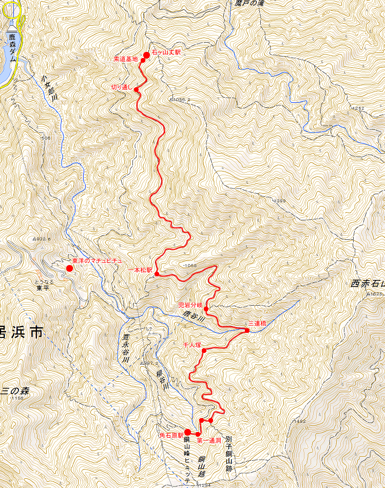 角石原駅~石ヶ山丈駅の区間を、順を追って探訪して行きます。